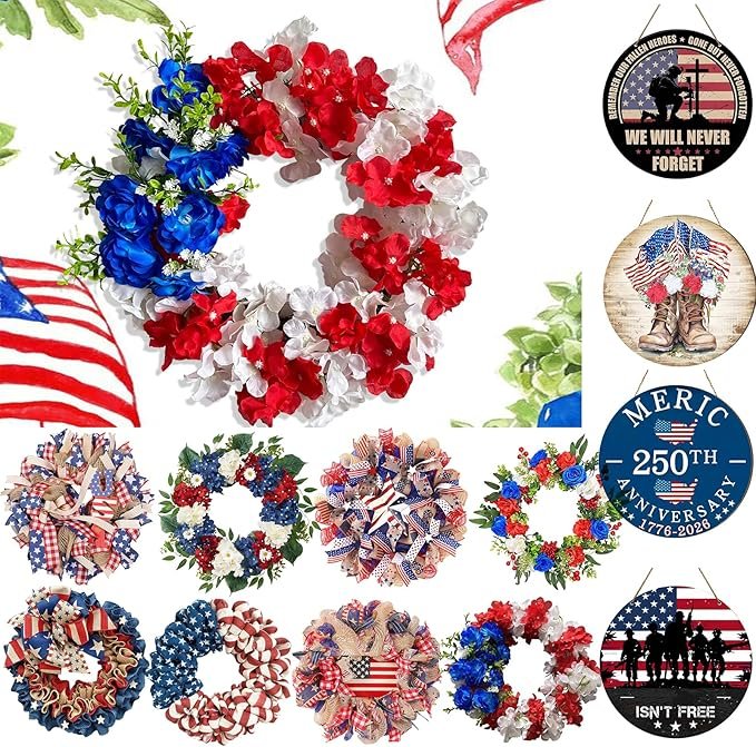 - Independence Day Wreath:4th of july is coming,so don’t forget to take advantage of this essential patriotic decoration indoor and outdoor to celebrate the festival.These 4th of july Decorations which are matched perfectly with USA memorial day,give you the feeling of independence day summer.These 4th of july Decor are versatile and can be used for memorial day, parties and wedding.or use as a gift or as gift tags or giving away to friends, teachers, students American decor.