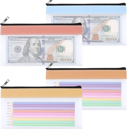 - 【Products Include】4PCS 7.6 x 3.7 Inch Clear Pencil Pouch, 4 different colors.Easy to spot your stationery, cosmetics and small items without rummaging around.