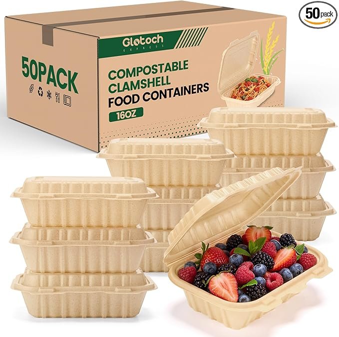 - 🐚 Value Pack of Clamshell Food Containers: The package includes [50] sets of 16 oz rice husk food containers with lids. Stackable for easy storage, the compact packaging saves space in your kitchen or pantry. The clamshell take out boxes are suitable for handling large quantities of food and are ideal for home use. Perfect for pasta, snacks, desserts, salads, and appetizers.