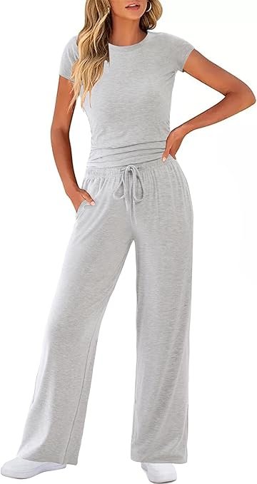 - Ruched Crop Top: The short sleeve tops includes stylish ruched sides that flatter your shape. Its fitted cut make it a versatile top to wear alone or as part of this cozy womens lounge set