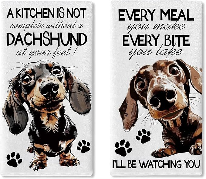 - Home Decorative Towel: Our rustic kitchen absorbent dishcloths are printed with vivid patterns and words of “a kitchen is not complete without a dachshund at your feet, every meal you make every bite you take, I’ll be watching you”. It can make your farmhouse dish towel stand out and become your perfect home decor