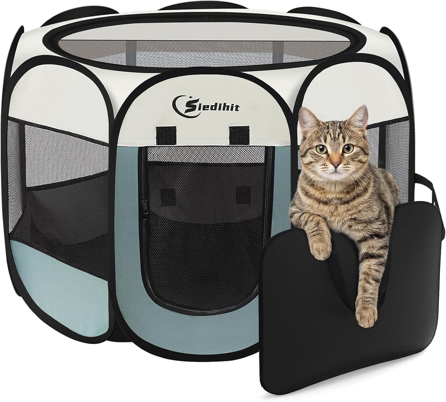 • 【No Assembly required】Opening the dog pen takes only a few seconds, is lightweight, strong, and does not require assembly. When not in use, it can be folded into the tote bag provided by us, which takes up minimal space and is easy to carry and store. Spacious interior Spaces allow your pet to play, sleep, hide or isolate. Perfect for indoors, lawns, beaches, parks, Tours, camping and more!
