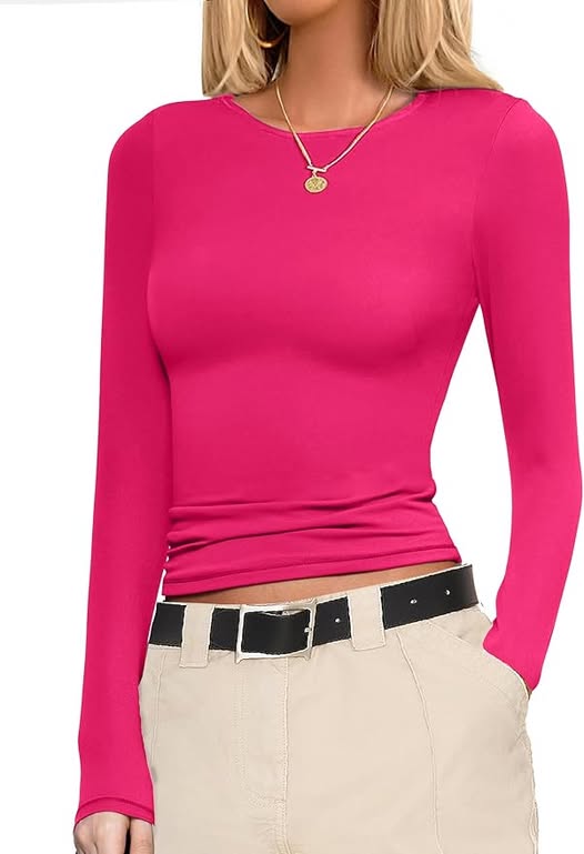 Ekouaer Womens Long Sleeve Shirts Fitted Tops