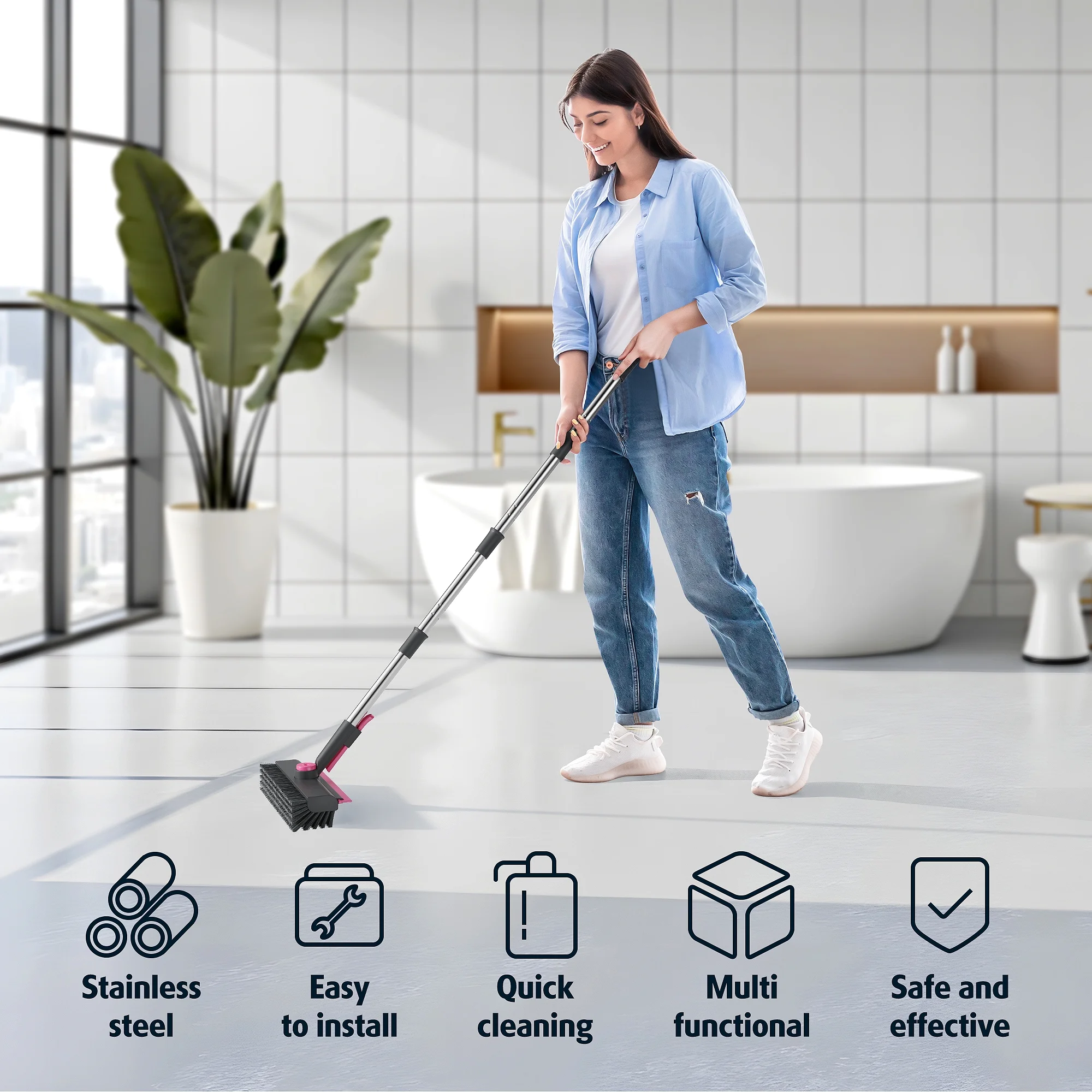 - Extendable Long Handle: Adjustable stainless steel pole extends from 30 to 50 inches, allowing you to clean floors, walls, and hard-to-reach areas without bending or straining your back.