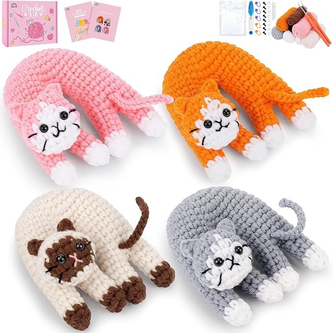 • All-In-One Crochet Starter Kit for Beginners: Unbox everything you need to create four delightfully quirky cat creations! This complete starter cat crochet kit includes enough yarn for crocheting, crochet hooks, eyes, soft stuffing, fuzzy sticks, yarn needles, stitch markers. and of course, our easy-to-follow instructions and video tutorials.Follow along easily with our step-by-step video tutorials. With this complete crochet cat kit, no extra trips to the craft store are needed!