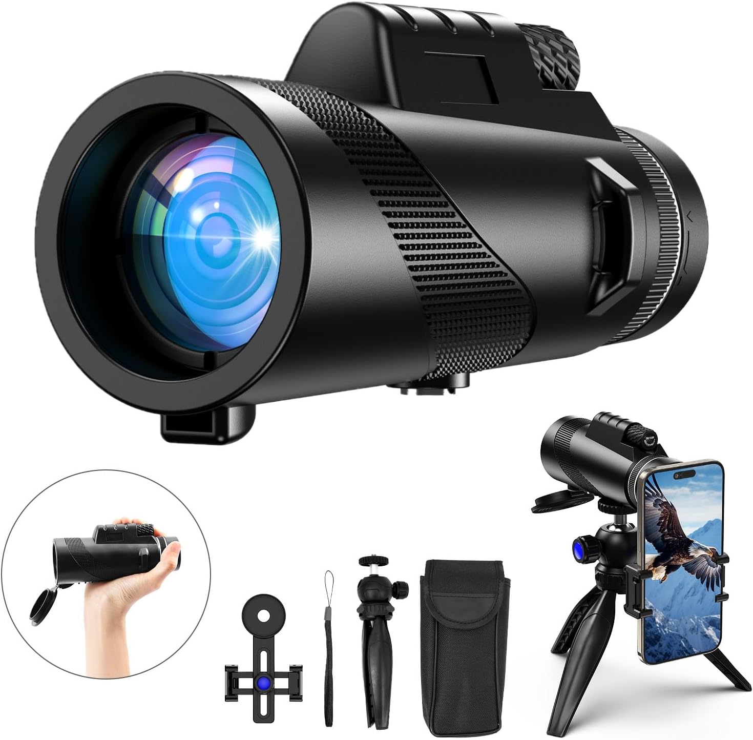 - 【80×100 HD Magnification】With 80 times magnification and 100mm objective lens, this monocular telescope is designed for outdoor sports enthusiasts and nature lovers, allowing them to see farther with clearer details, and bring an unparalleled viewing experience.