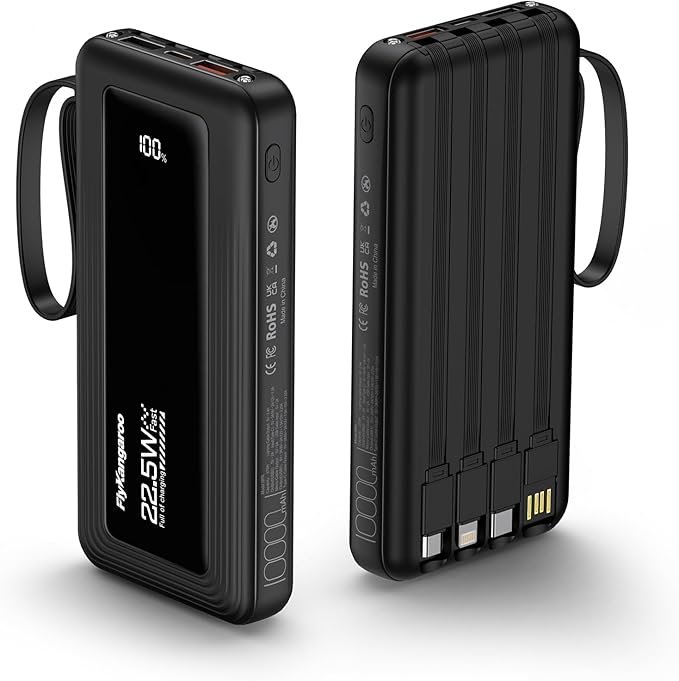 - Portable Charger with Built-in Cables:Say goodbye to carrying multiple cords and adapters. This slim portable charger with built-in cables comes with 4 integrated cords (iOS, USB-C, Micro, and USB-A), widely compatible with almost all devices such as iPhone, iPad, Samsung Galaxy, Google Pixel, Android phones, and tablets. Perfect for daily use or travel. (TSA-approved for air travel.)