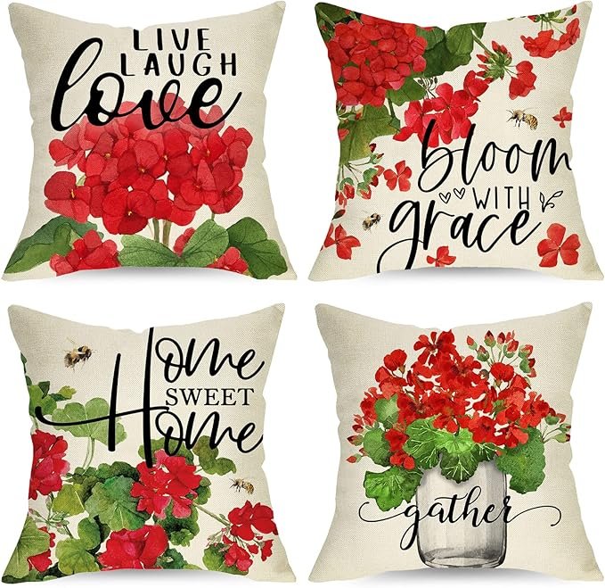 • Exquisite Design: The geranium pillowcases are designed with words “bloom with grace, gather” and bee, jar printed in the middle of the pillowcase. The simple retro style is very suitable for expressing your feelings. The pillowcase is not only a gift full of love, but also a very warm home decoration