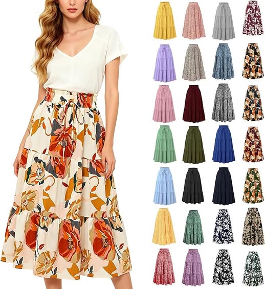 • Design: Womens Skirts Midi Length, Holiday A Line Tiered Skirt, Cute Flowy Floral Skirt, Ruffle High Elastic Waist Skirt, Boho Faldas De Mujer Elegantes, Aesthetic Y2k Clothing