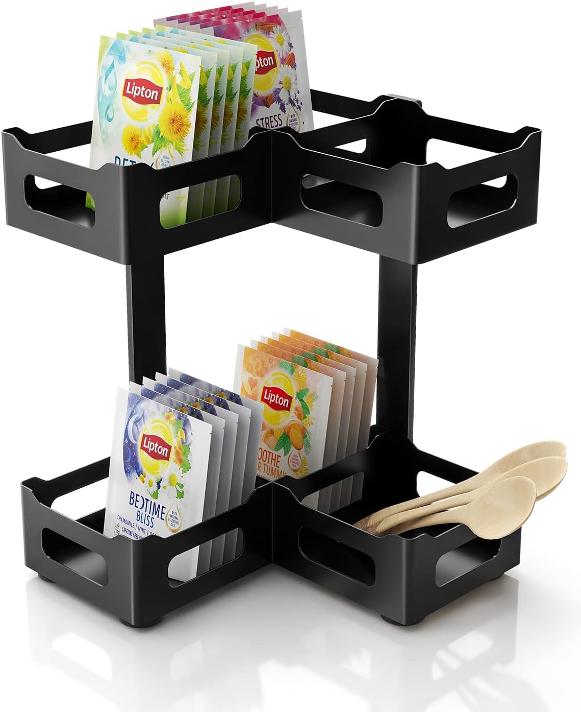 - ✔【Sturdy And Durable】:Tea Organizer for Tea Bags Made of Sturdy Metal,Excellent surface treatment,not rust, which won’t splinter or chip like pressed bamboo board & plastic