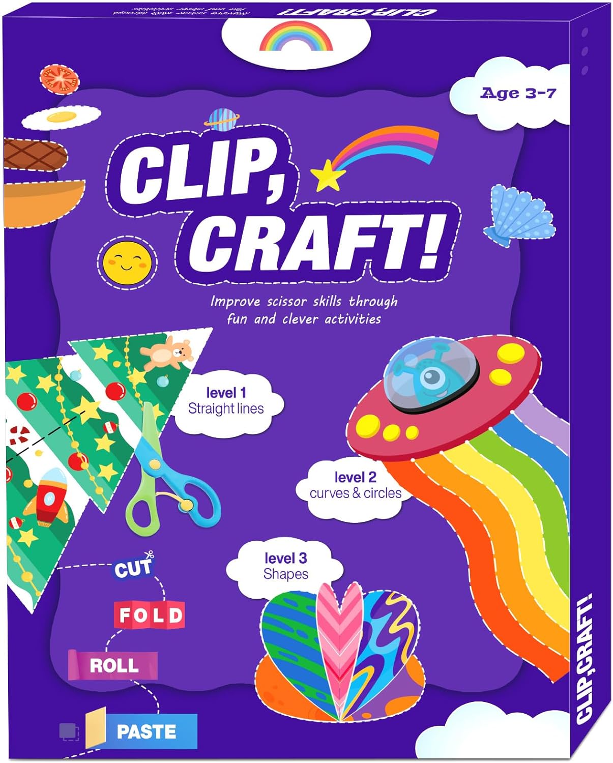 - DEVELOP KIDS SCISSORS SKILLS: Clip, Craft sets make scissor practice fun with 22 engaging craft activities, helping master scissor skills for kids ages 3-5! With 3 levels that progress in difficulty, this crafts for kids ages 4-8 guides kids step by step—start with straight lines, advance to curved and zigzag patterns, and finally, creating cute crafts with confidence