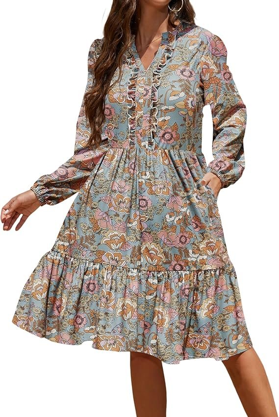 - Features: Long Sleeve Dress; V Neck Dress; Ruffle Dress; Maxi Dress; Elastic Waist; Tiered Ruffle Dress; Dresses With Pockets; A Line Dress; Somerset Dress; Elastic High Waist Flowy Dress; Beach Dress;Boho Dresses For Women 2025