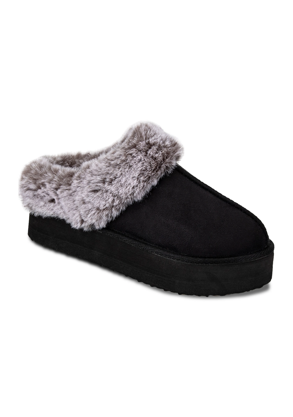 Women’s Microsuede Tipped Faux-Fur Clog Slippers